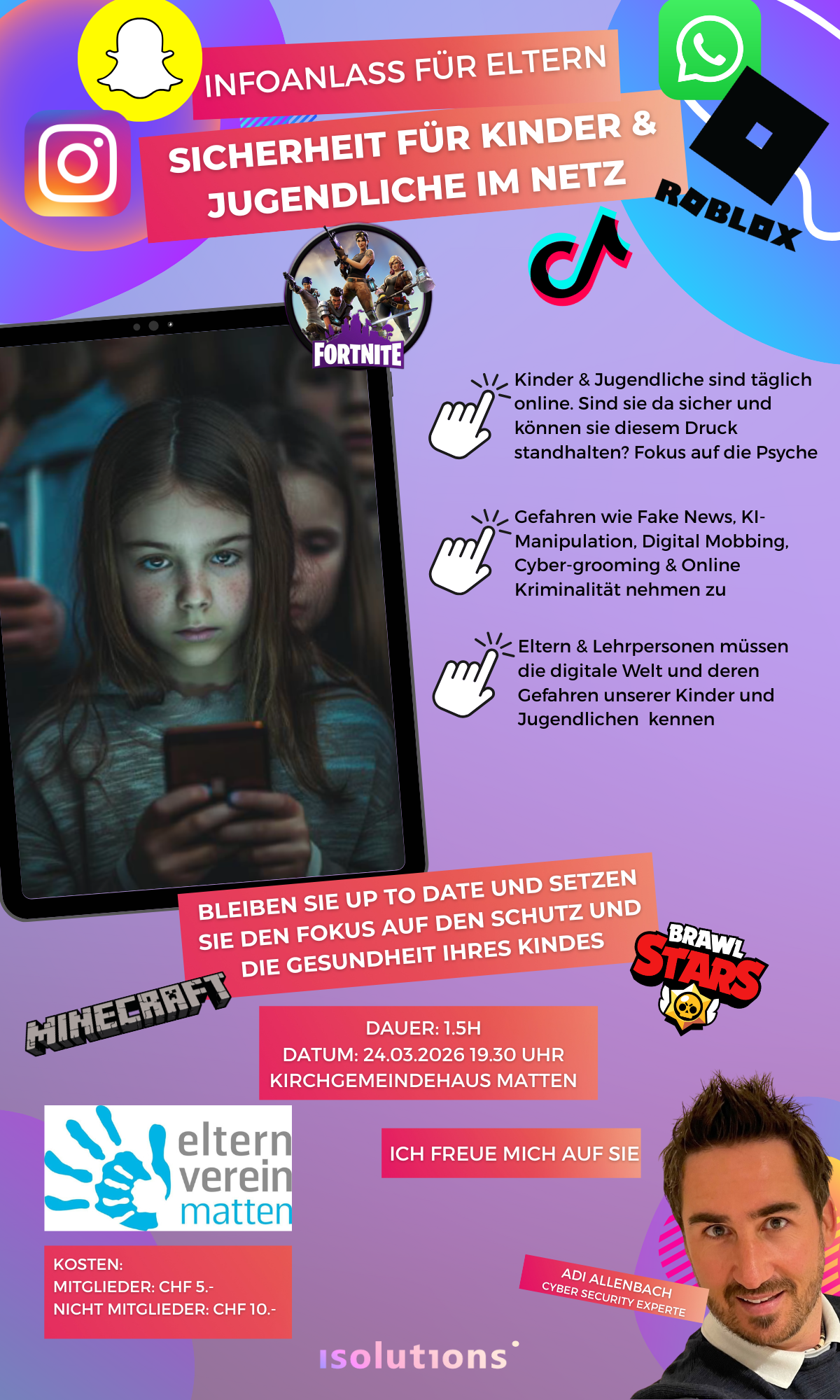 Dienstag, 24. März 2026 Infoanlass für Eltern, Sicherheit für Kinder & Jugendliche im Netz