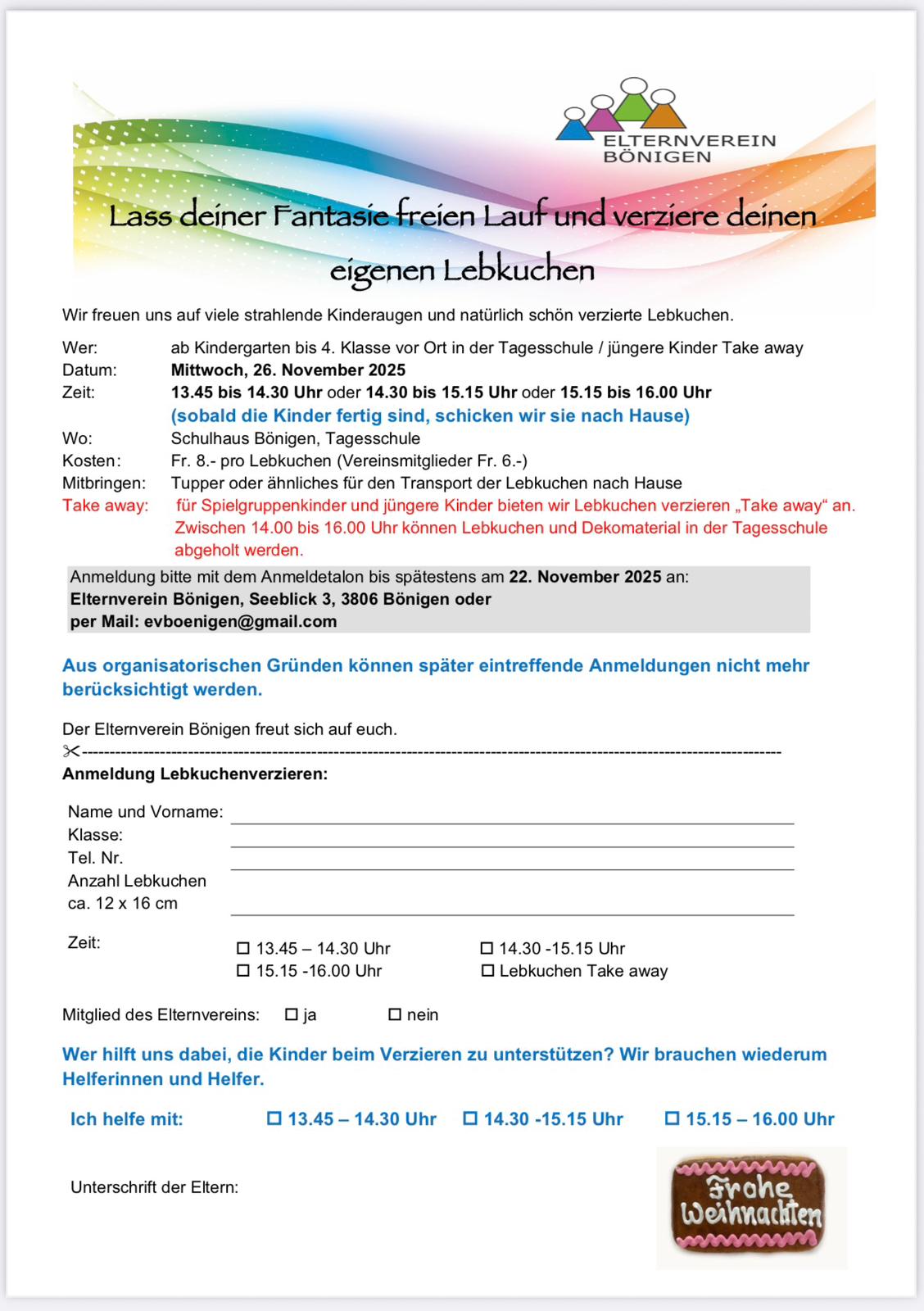 Unsere Nachbarn in Bönigen organisieren jedes Jahr ein Lebkuchen verziehren für die Kinder. Am Mittwoch 26. Novemer; wer Lust und Zeit hat, der melde sich an. Ist immer wieder schön und lecker in der Weihnachtszeit.
